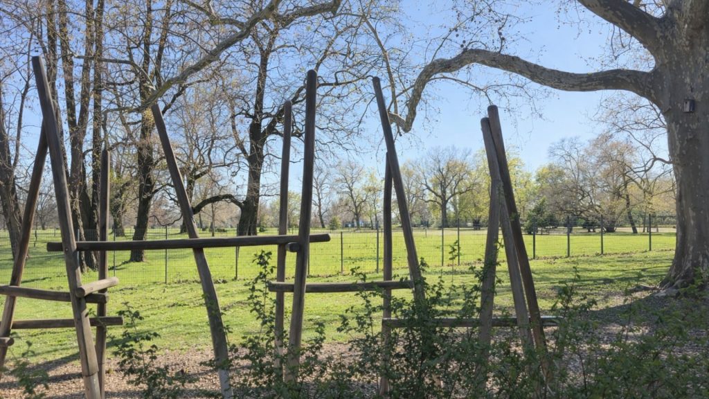 Das ist nicht einfach eine Rutsche neben dem Affengehege. Hier können Kinder sich wie ein Tier selbst bewegen — shimmy wie Affen, rennen wie Nandus oder hopsen wie Kängurus. Jede Station ist ein eigener kleiner Parcours mit Holzgerüsten, Kletterelementen und Info-Tafeln. Und ja: Ein kostenloses Heft mit Stempel-System, das am Ende ein „Kinderturn-Diplom” bringt.